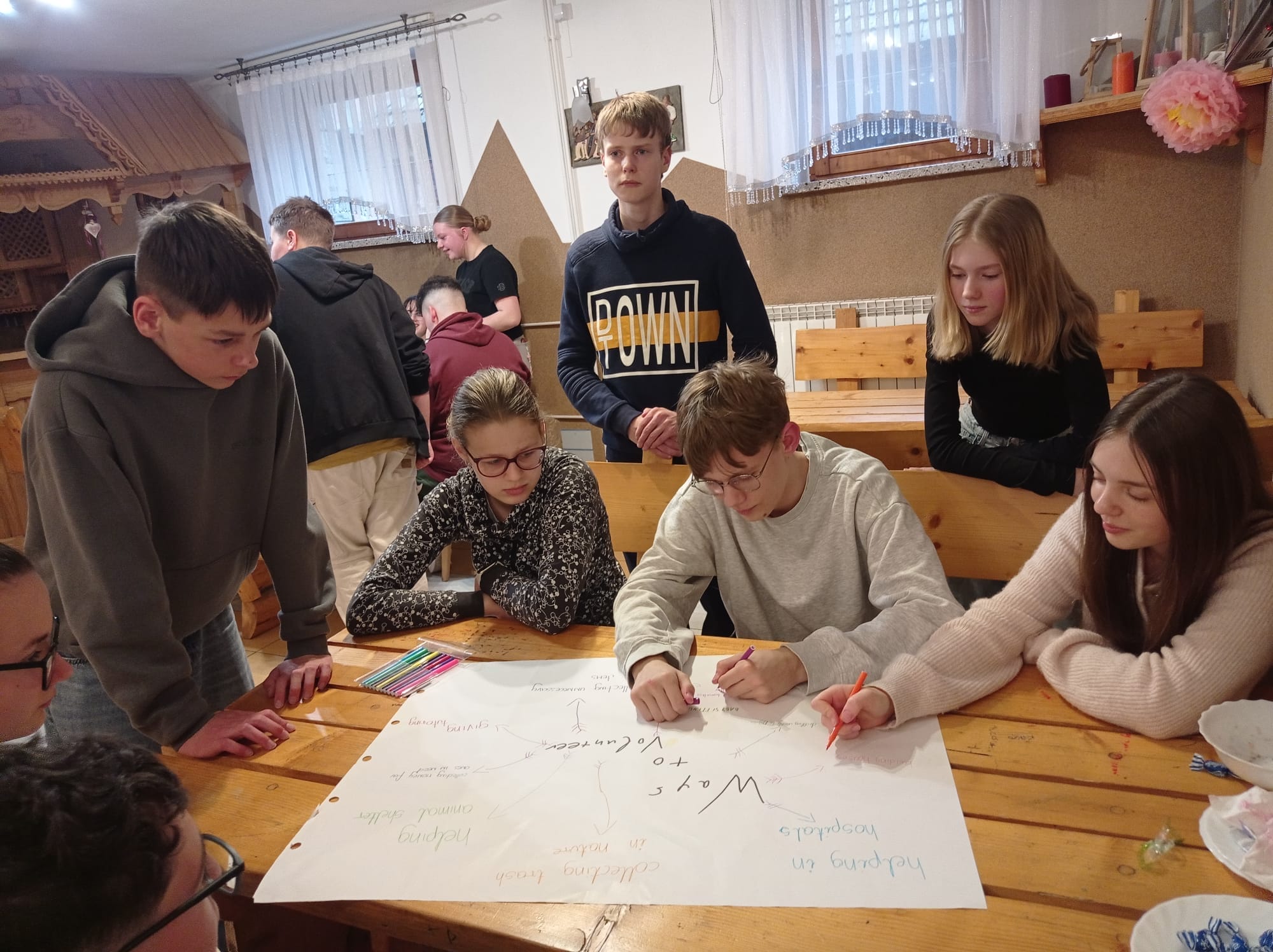 Zastartowaliśmy zabawą w pingwiny, by potem płynnie przejść do dyskusji o wolontariacie. Ten dzień był poświęcony właśnie temu tematowi.